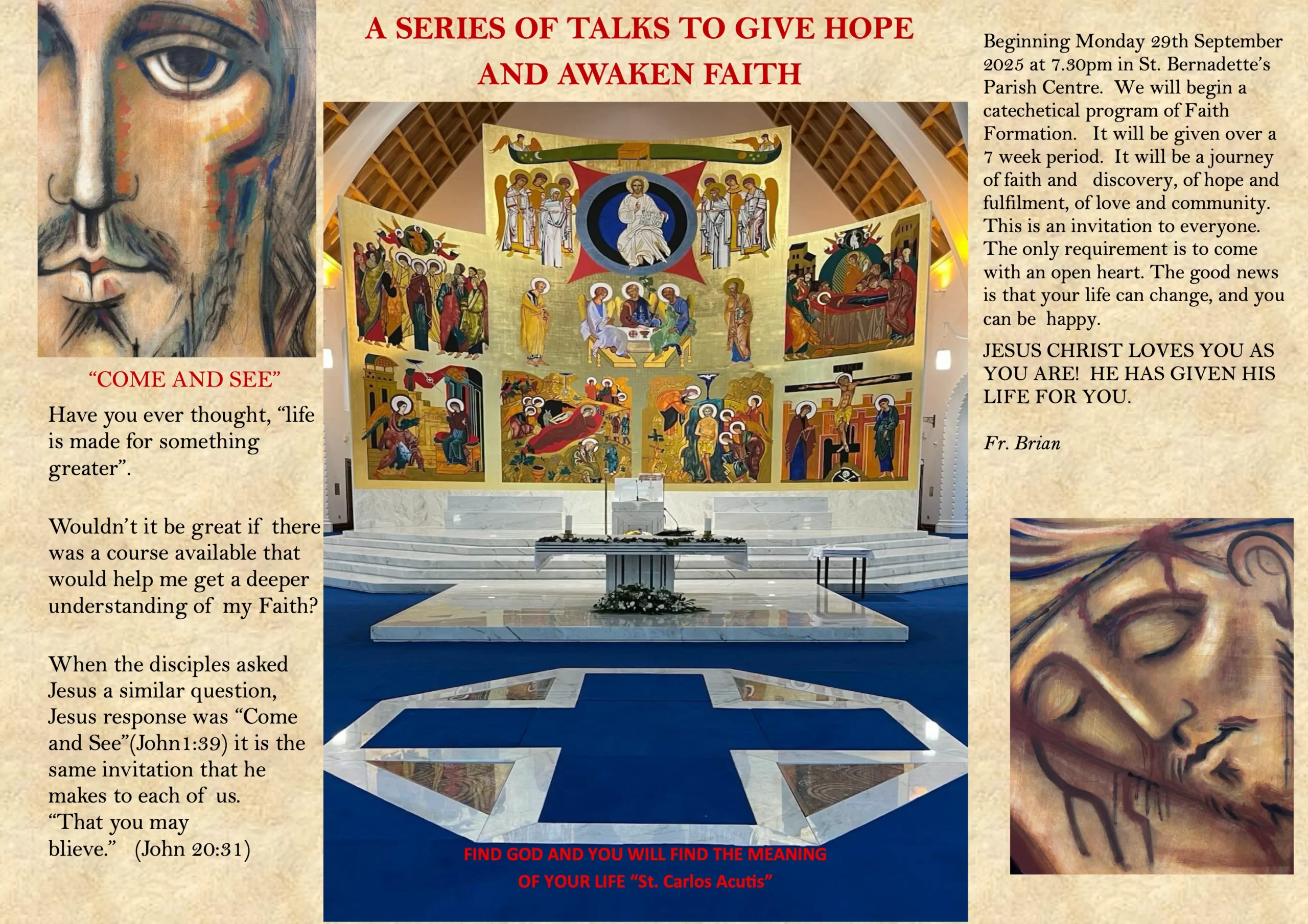 While the Church is temporarily closed, Weekend Masses continue in the Parish Centre.